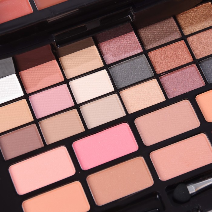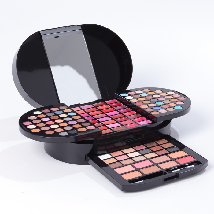 Большой женский косметический набор для макияжа включает целую палитру разных средств для красоты.
