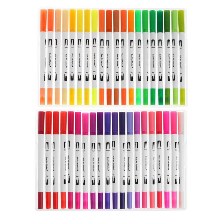 Большой ресурс чернил - более 300 метров линия рисования.Набор из 60 оригинальных профессиональных двухсторонних маркеров / фломастеры для скетчинга.Идеальные инструменты для иллюстраторов, студентов и всех, увлекающихся творчеством.Фломастеры используются для создания скетчей, манга, комиксов, скрапбукинга и многого другого.Подходят для письма по большинству поверхностей: бумага, пластик, дерево и др.Дети просто в восторге от такого подарка!Линия письма намного тоньше и изящней.Такой маркер можно использовать для написания красивых текстов, обводить рисунки, и заниматься более тонкой творческой работой.Широкий выбор цветов позволит создавать более насыщенные композиции.Яркие, стойкие цвета, удобный корпус - хороший выбор для работы и творчества.