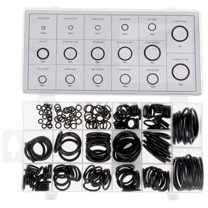 Наборы уплотнительных колец являются универсальными ремкомплектами для аварийного и текущего ремонта гидро и пневмоустройств, для различных машин и спецтехники. Так же можно использовать в автосервисе и на станции технического обслуживания при ремонте системы кондиционирования автомобиля, а также во время других ремонтно-монтажных работ, например, сантехнических (для смесителей, фитингов и проч.). Данный комплект универсален - в него входит большое количество типов и размеров колец. В наборе подобраны размеры резиновых уплотнительных колец, которые чаще всего применяются при ремонте оборудования. Все изделия набора уплотнительных колец выполнены из высокопрочного материала, бензомаслостойкие.