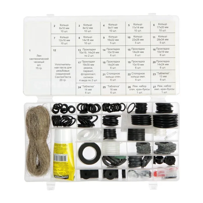 Набор прокладок "СУПРИМПЛАСТ" Сантехник № 4, плоские и формовые, в органайзере — Характеристики