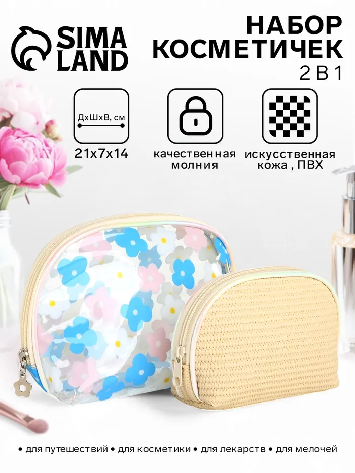 Набор простых косметичек на молниях 2 в 1, с принтами, бежевый — Характеристики