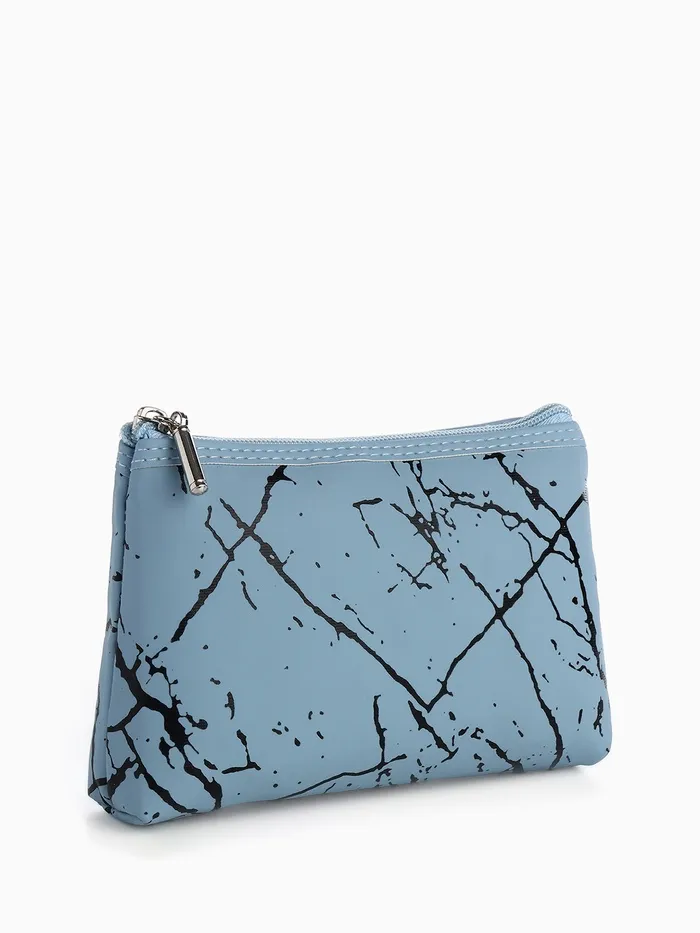 Набор простых косметичек на молниях 2 в 1, с принтом, голубой — Характеристики