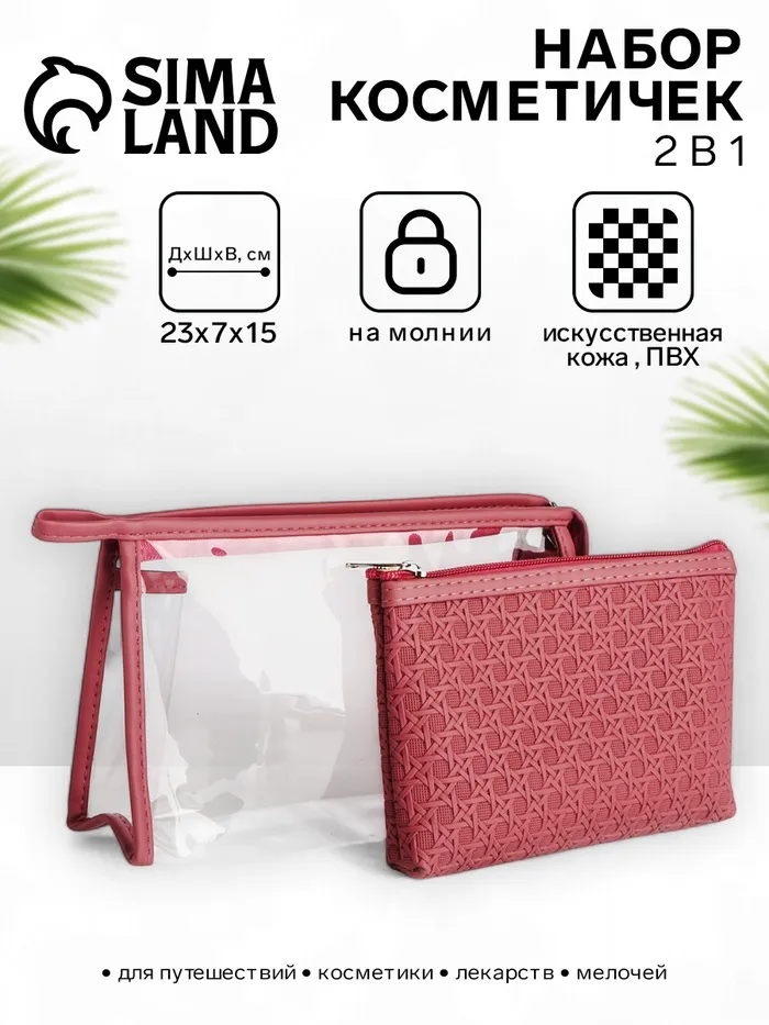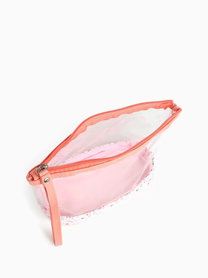 Набор простых косметичек на молниях 2 в 1, с принтом, коралловая — Характеристики
