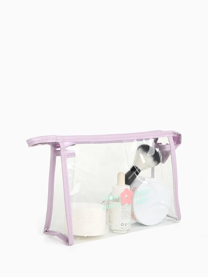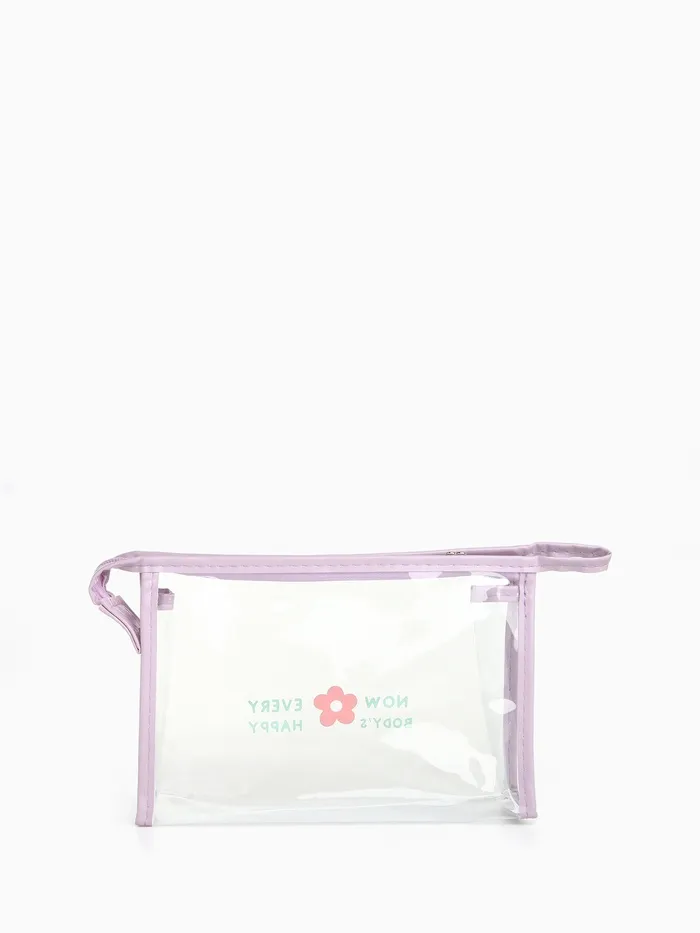 Набор простых косметичек на молниях 3 в 1, с принтом, сиреневый — Характеристики