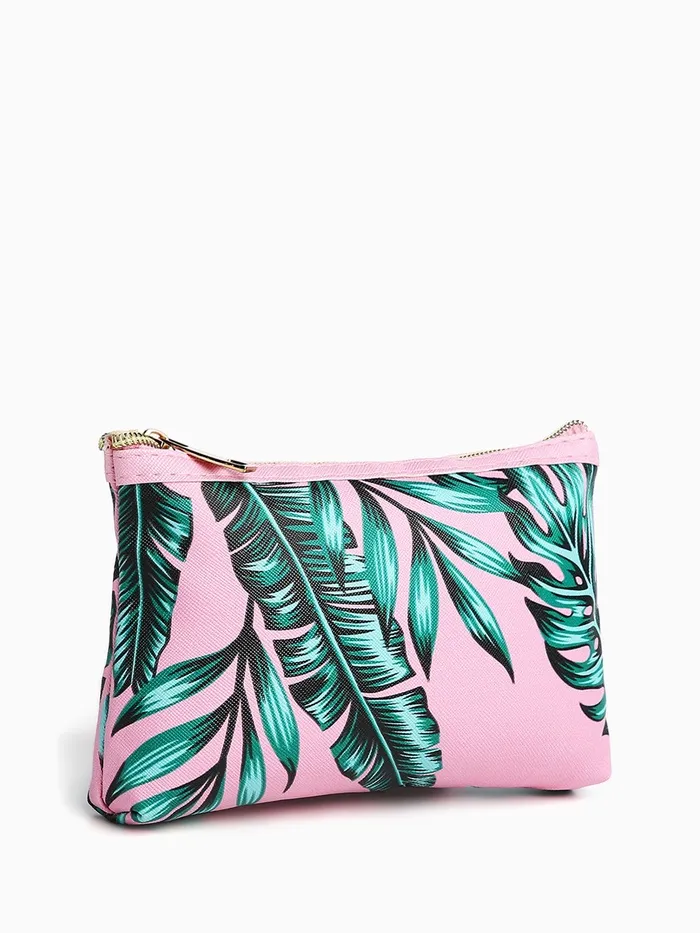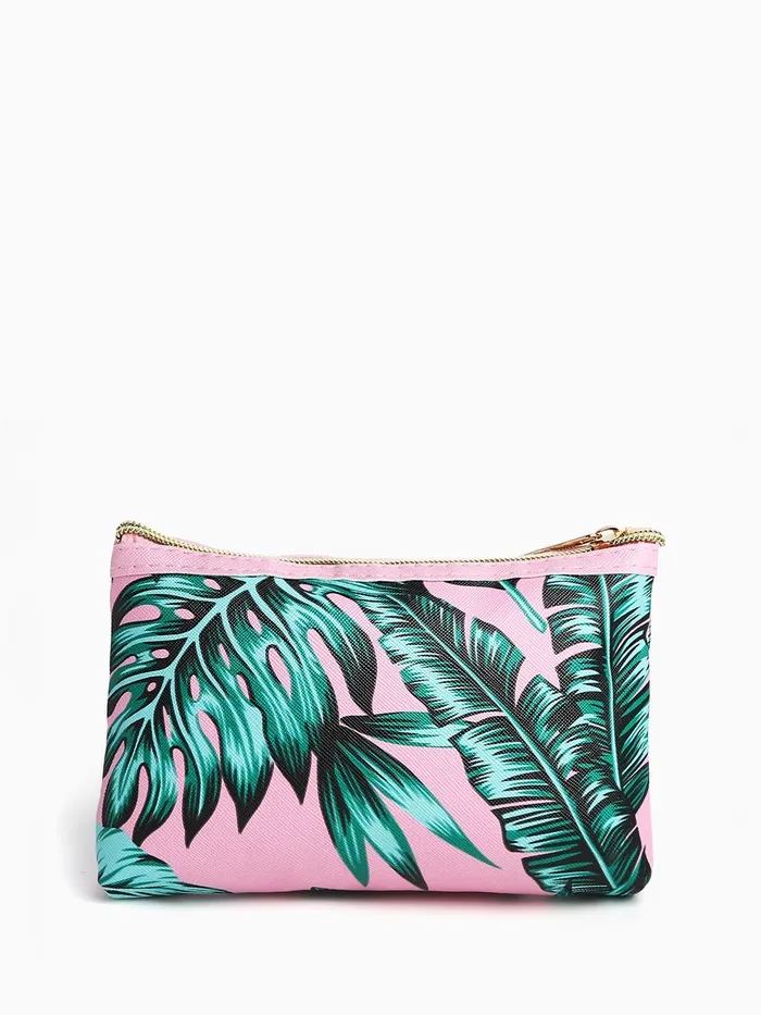 Набор простых женских косметичек на молниях 2 в 1, с принтом, розовый — Характеристики