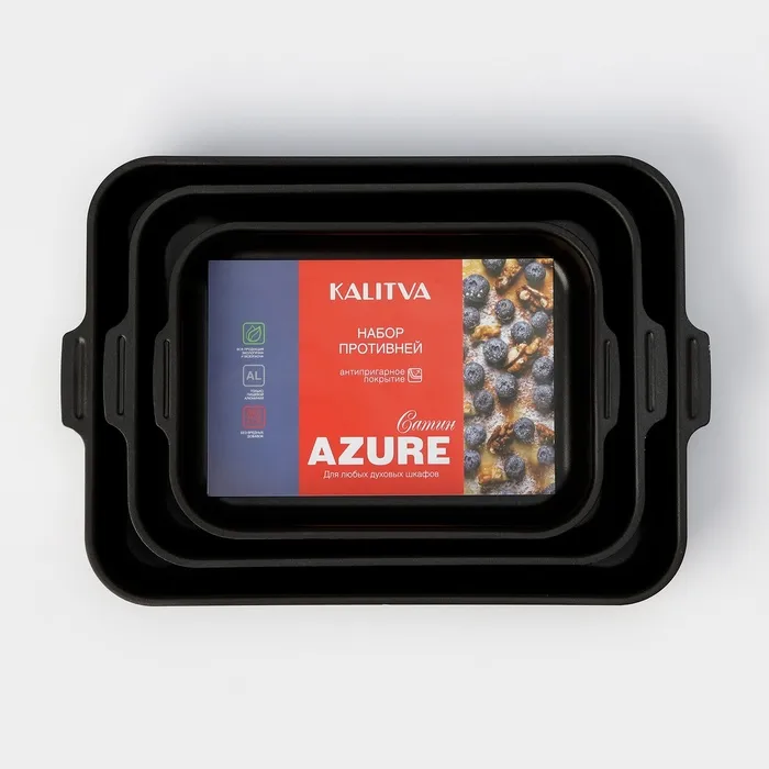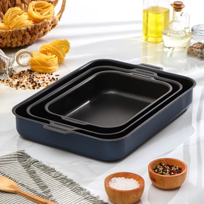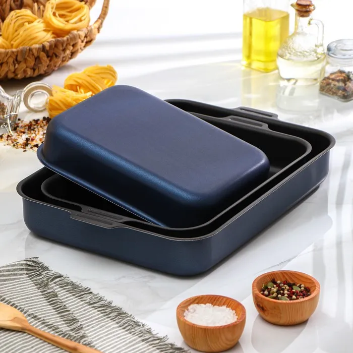 Набор противней «Лазоньера», 3 предмета: 19×25 см, 23×30 см, 27×35 см, h=7 см, антипригарное покрытие, цвет синий — Характеристики