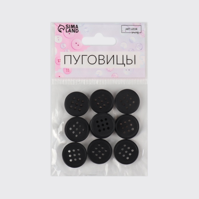 Набор пуговиц, 9 проколов, d=18 мм, 10 шт., чёрный