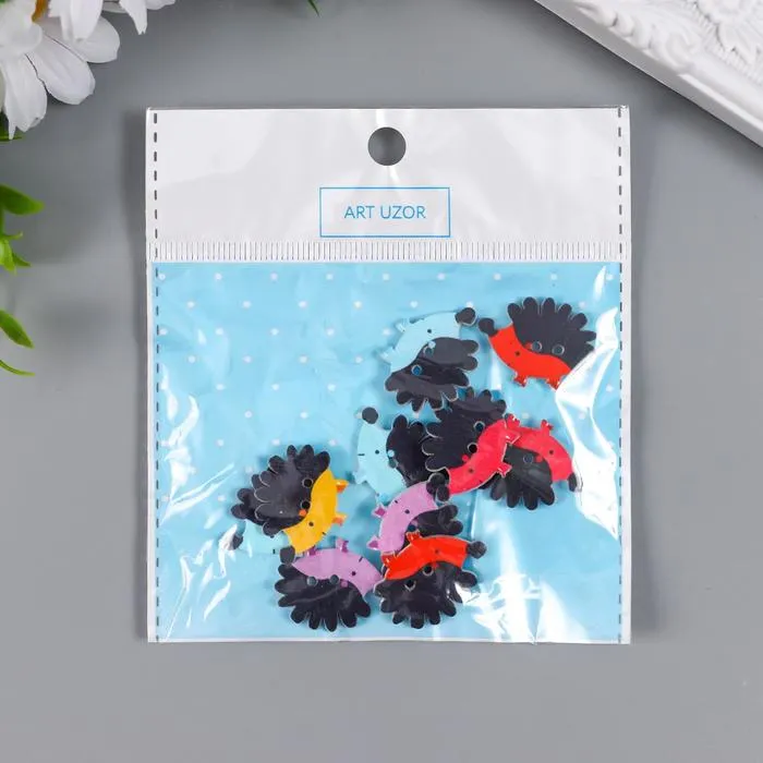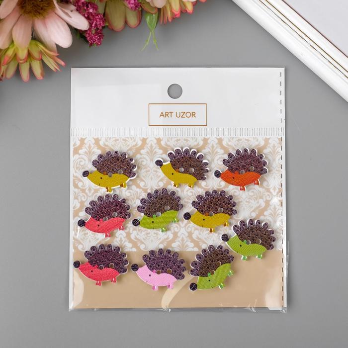 Набор пуговиц декоративных дерево «Маленькие ёжики», набор 10 шт., 1.7×2.3 см, МИКС — Характеристики