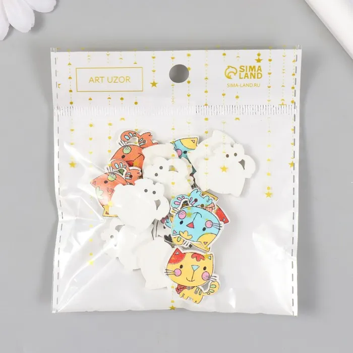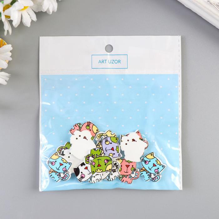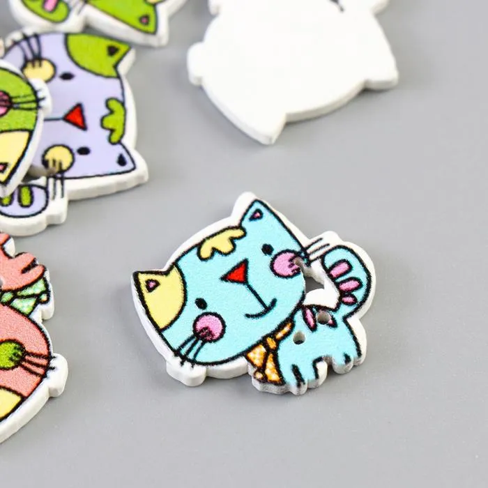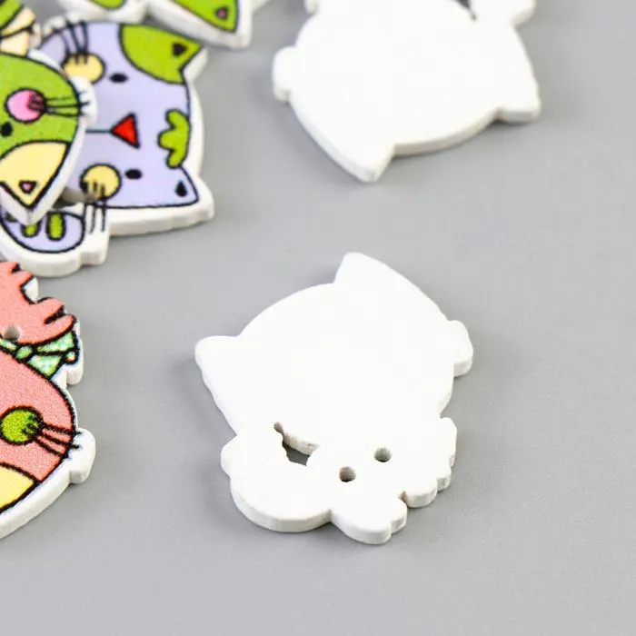 Набор пуговиц декоративных дерево «Милый котёнок», набор 15 шт., 2×2.1 см, МИКС — Характеристики