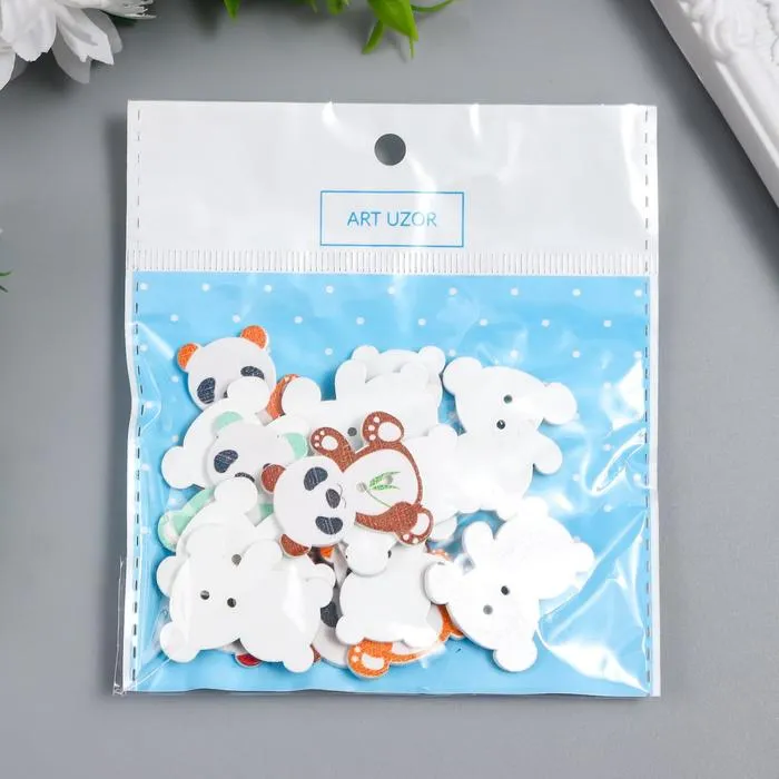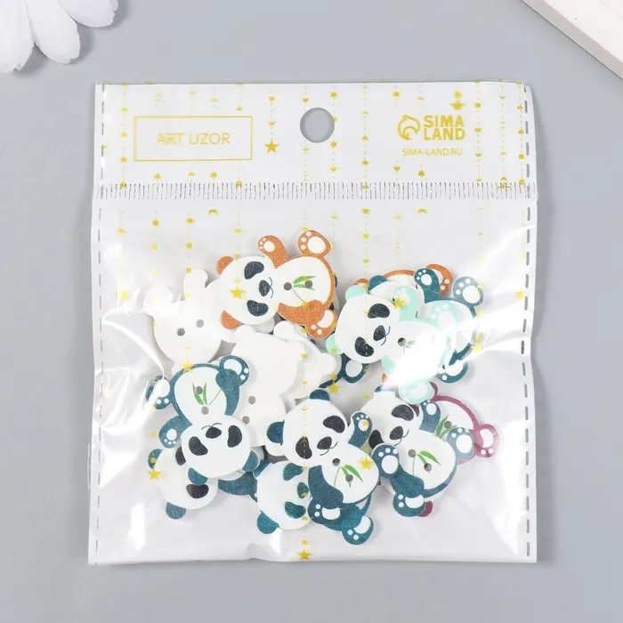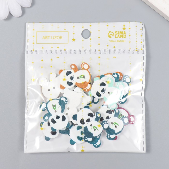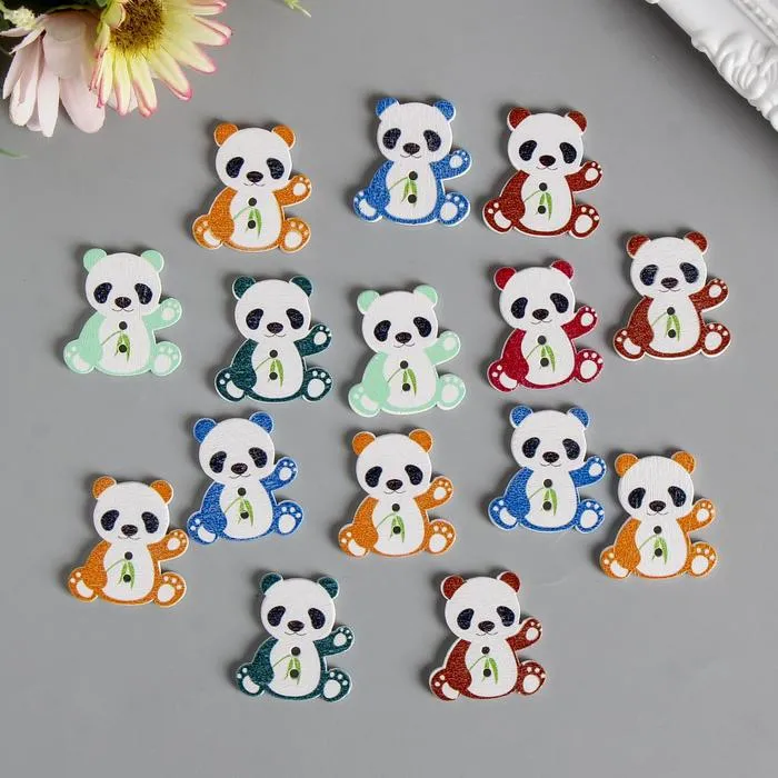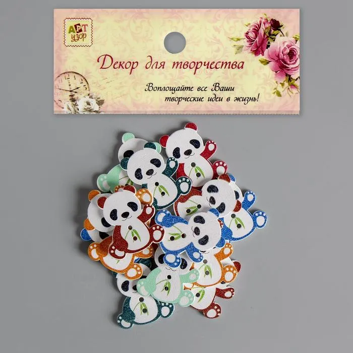 Набор пуговиц декоративных дерево «Панда с бамбуком», набор 15 шт., 2.7×2.5 см, МИКС — Характеристики