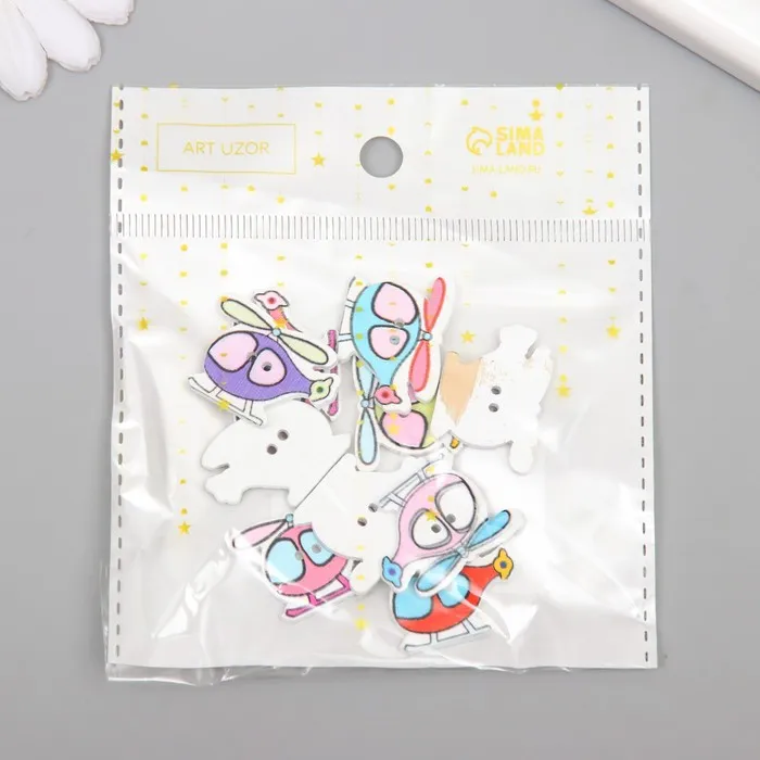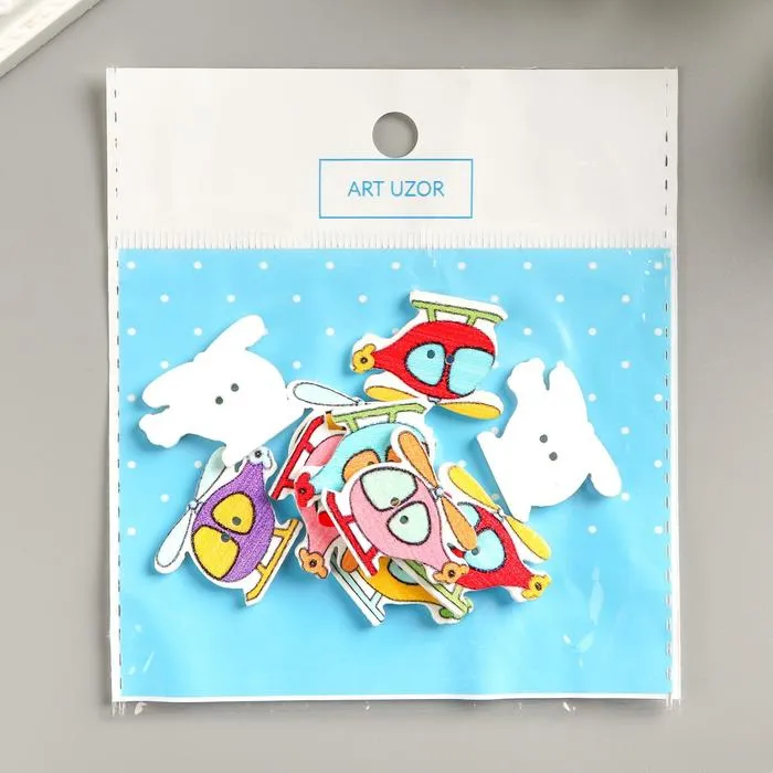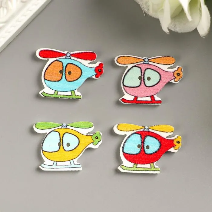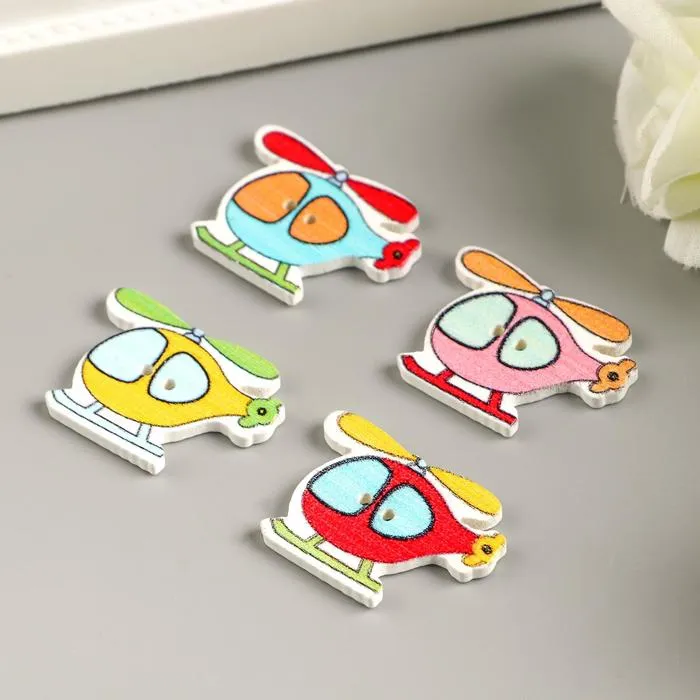 Набор пуговиц декоративных дерево «Вертолётики», набор 10 шт., 2×2.8 см, МИКС — Характеристики