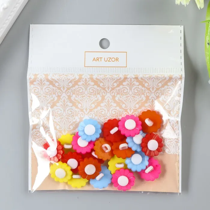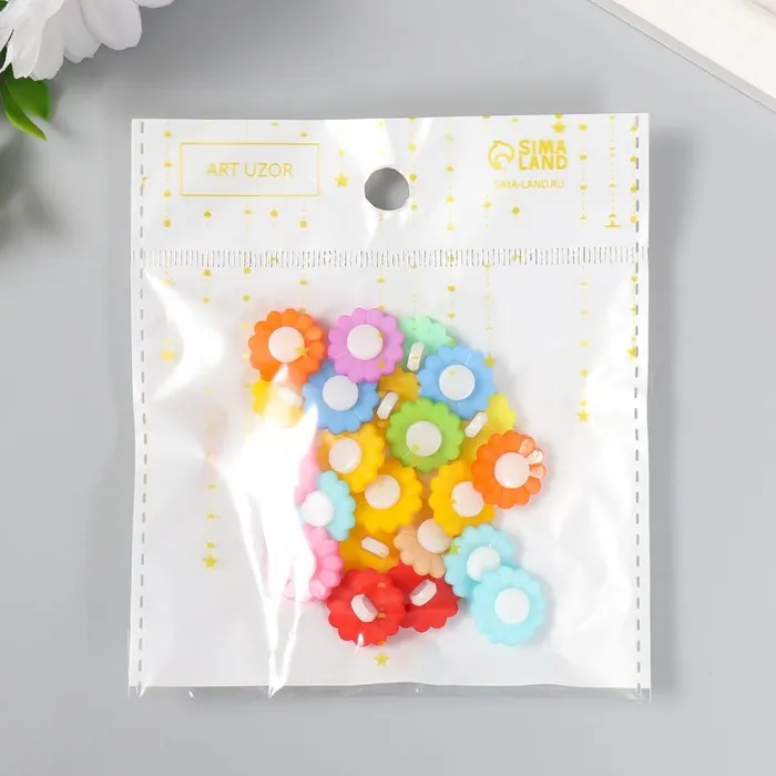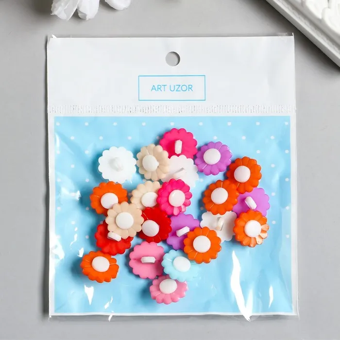 Набор пуговиц декоративных пластик «Цветочки яркие», набор 22 шт., 1.5×1.5 см — Характеристики
