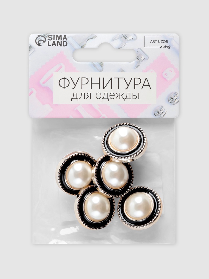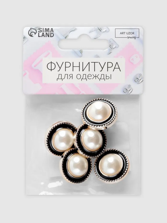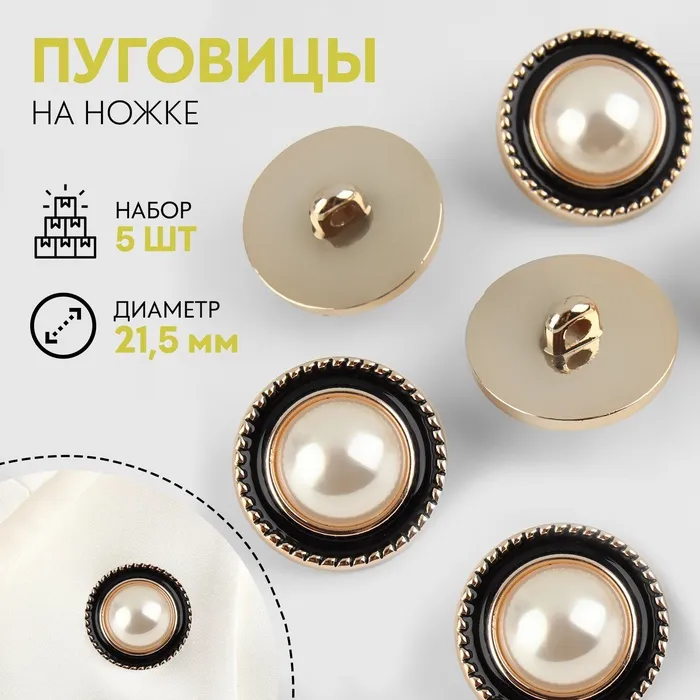 Набор пуговиц на ножке, d = 21,5 мм, 5 шт, цвет жемчужный/чёрный/золотой — Характеристики