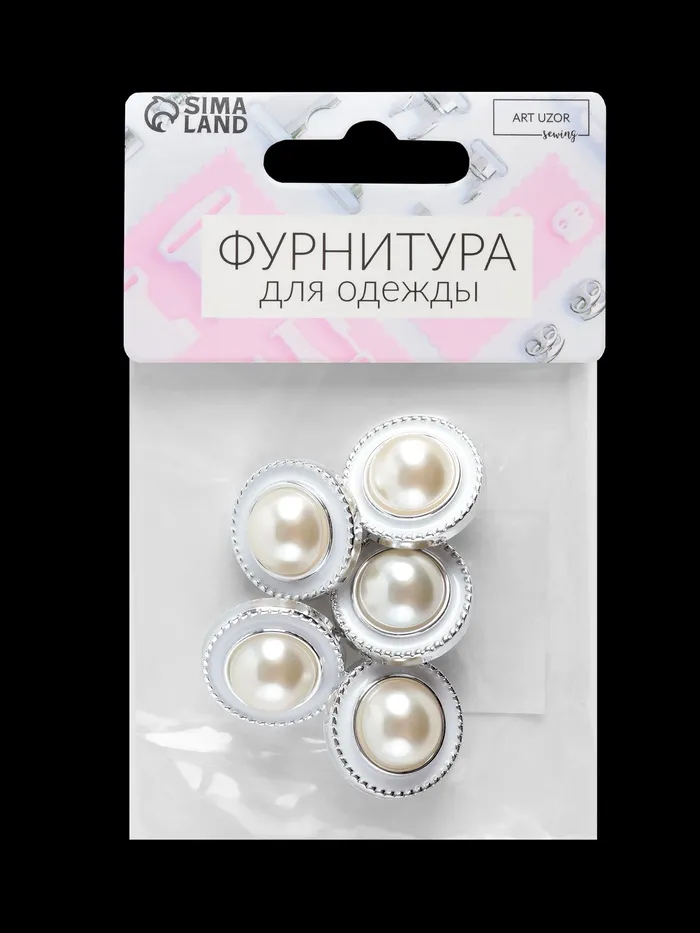 Набор пуговиц на ножке, d = 21,5 мм, 5 шт, цвет жемчужный/серебряный — Характеристики