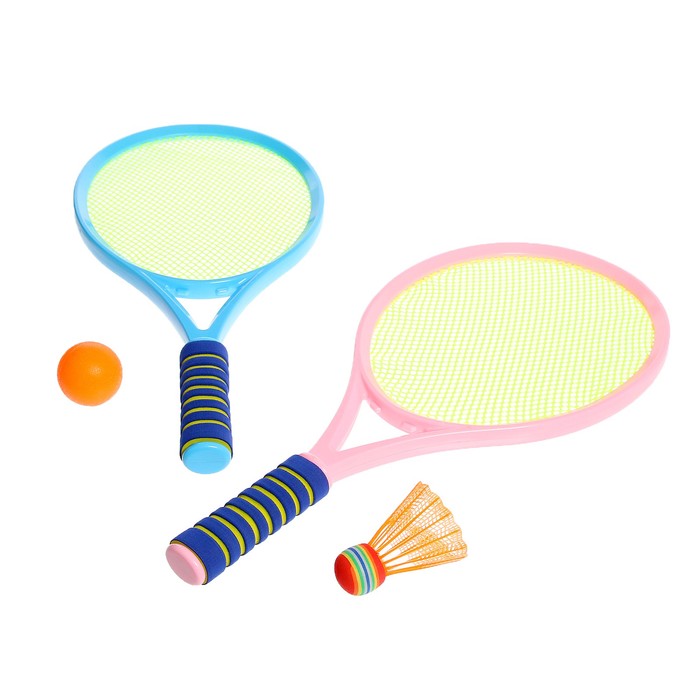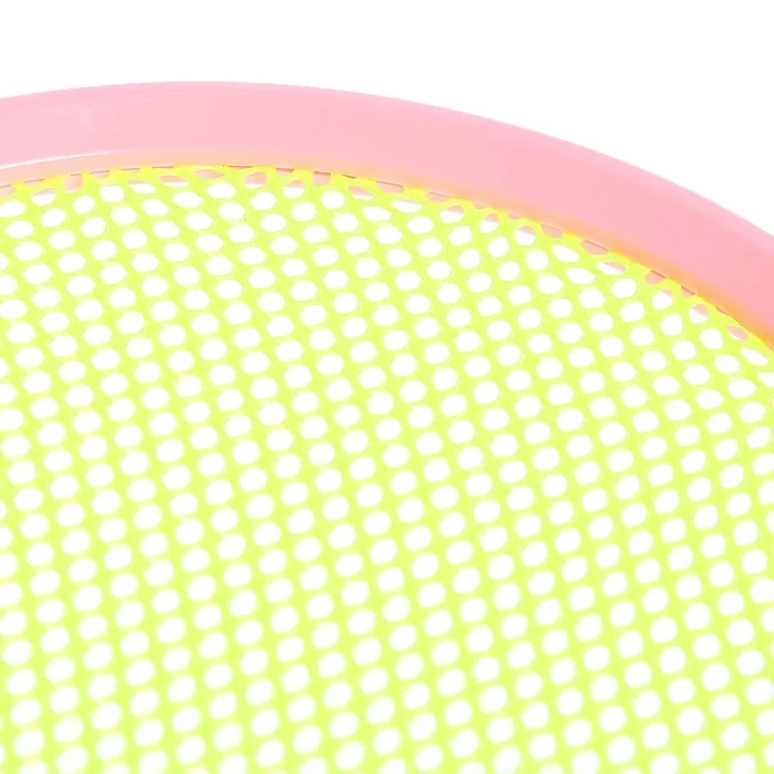 Ракетки небольшого размера удобно держать в руках детям и взрослым. Инвентарь выполнен из пластика, поэтому он достаточно лёгкий даже для малышей.