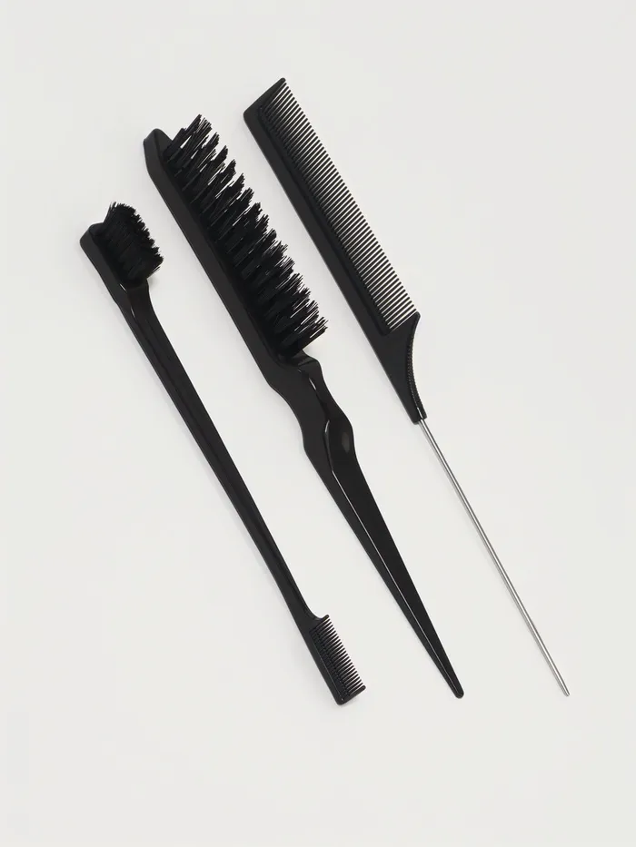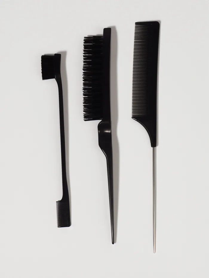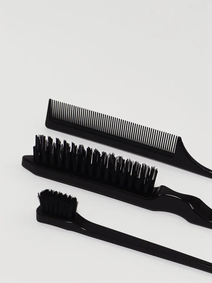 Набор «Расчёски для укладки» — это всё, что нужно для быстрого и аккуратного ухода за волосами в одном компактном комплекте. В него входят три практичных инструмента: щётка, расчёска с хвостиком и щётка. Все элементы выполнены из прочного пластика и оформлены в строгом чёрном цвете. С таким набором легко создавать гладкие укладки, в том числе зализанные хвосты и другие стильные образы.
