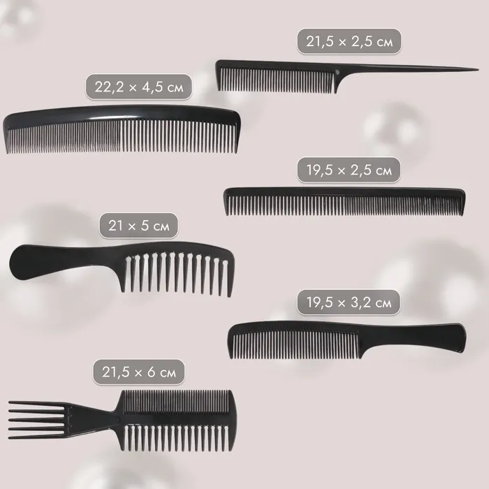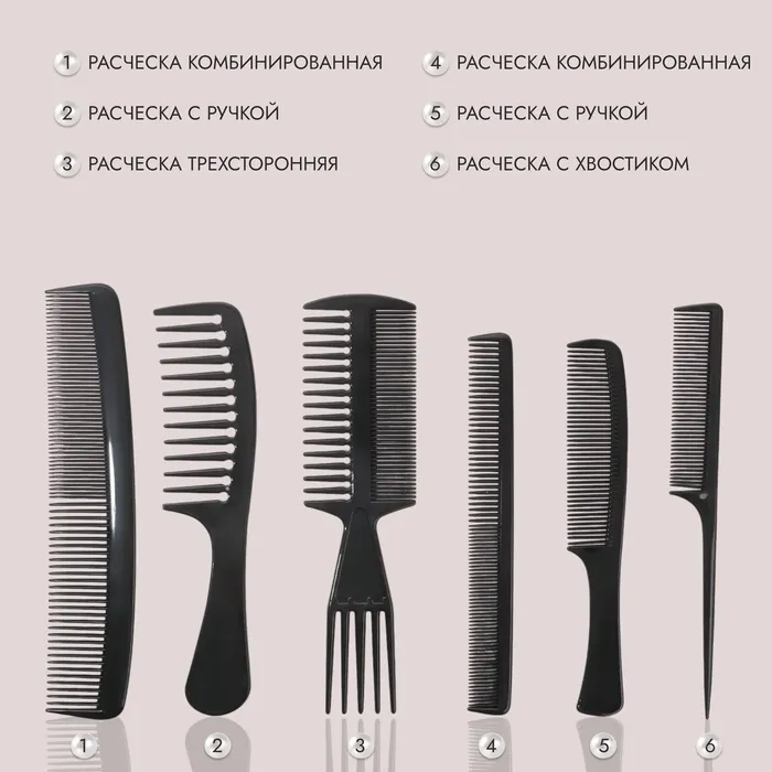 Набор расчёсок, 6 предметов, цвет чёрный — Характеристики