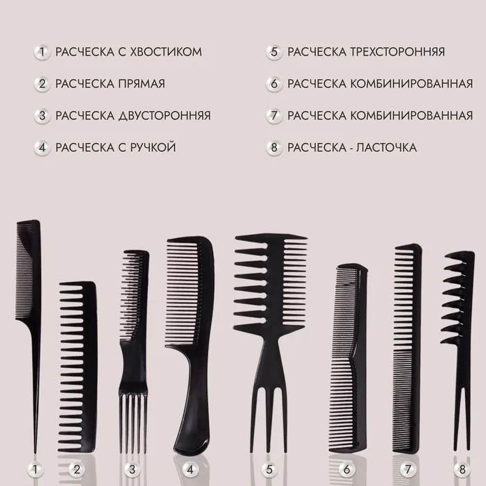 Набор расчёсок, 8 предметов, цвет чёрный — Характеристики