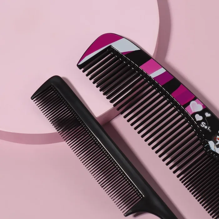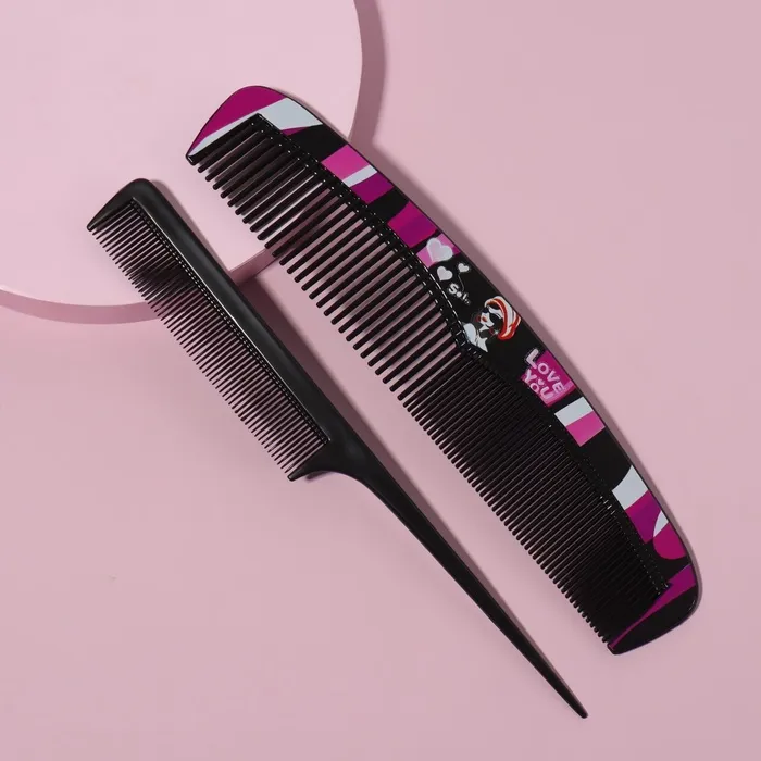 Набор из двух расчёсок позаботится о волосах любого типа. Комбинированный гребень с разной частотой зубцов аккуратно расчешет сухие и мокрые волосы, поможет при стрижке, горячей и холодной укладке, равномерно распределит по прядям пенку, мусс, гель, маску или краску. Гребешок с хвостиком обеспечит выравнивание пробора и разделение прядей при укладке или окрашивании. Этим инструментам любая задача по плечу.