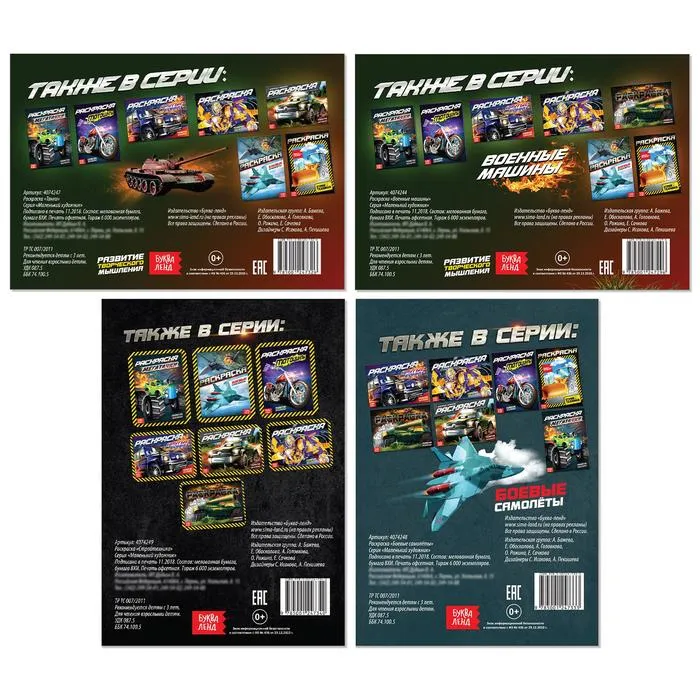 Набор раскрасок для мальчиков «Транспорт», 4 шт. по 12 стр., формат А5 — Характеристики