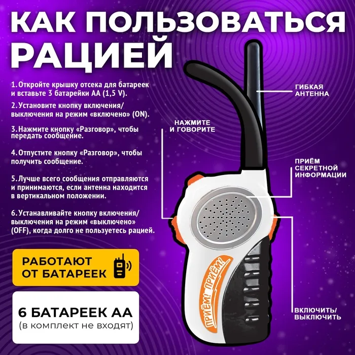Набор раций «Я на связи», 2 штуки, работает от батареек — Характеристики