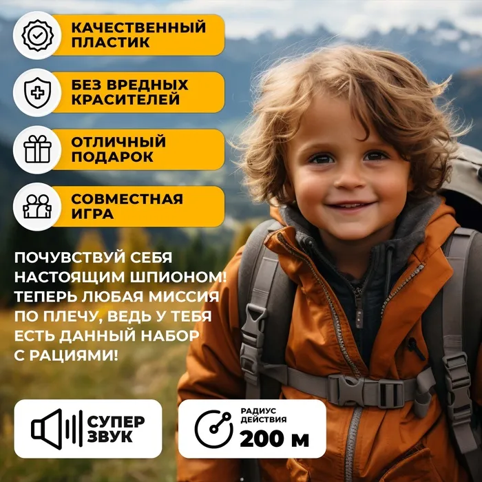 Набор раций «Шпионы», дальность до 200 метров, без шума, с аккумулятором — Характеристики
