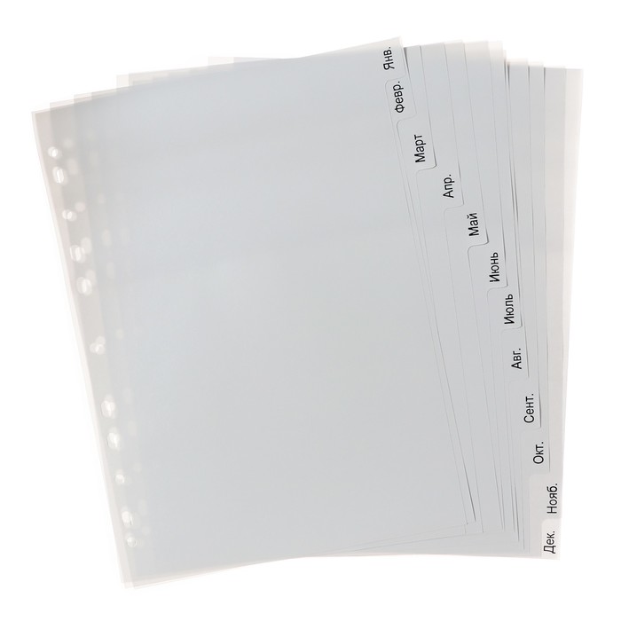 Набор разделителей листов А4 Office-2000, по месяцам ЯНВ-ДЕК, 12 листов, серые, пластик 120 мкм