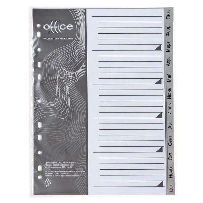 Набор разделителей листов А4 Office-2000, по месяцам ЯНВ-ДЕК, 12 листов, серые, пластик 120 мкм — Характеристики
