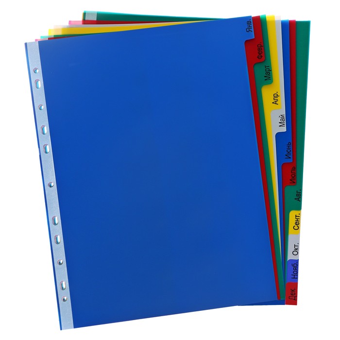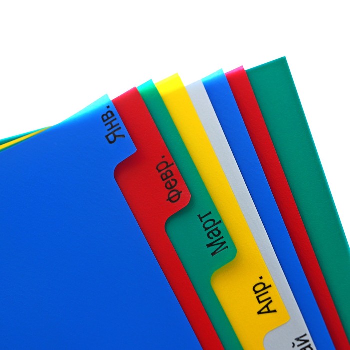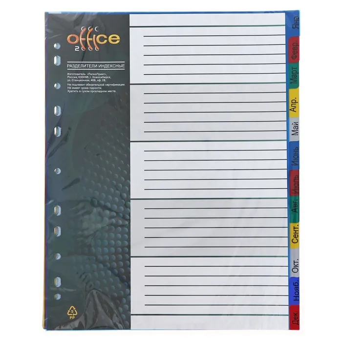 Набор разделителей листов А4+ Office-2000, по месяцам ЯНВ-ДЕК, 12 листов, цветные, пластик 140 мкм — Характеристики