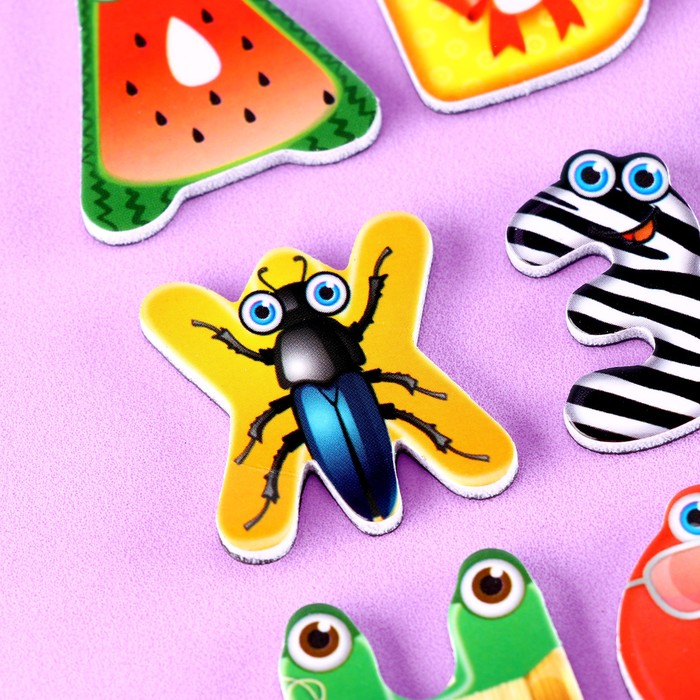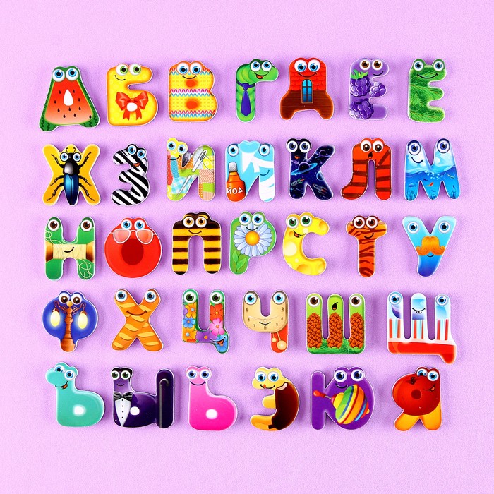 Тематические магниты помогут малышу изучить русский алфавит. На фигурках изображены предметы, которые начинаются на соответствующую букву.