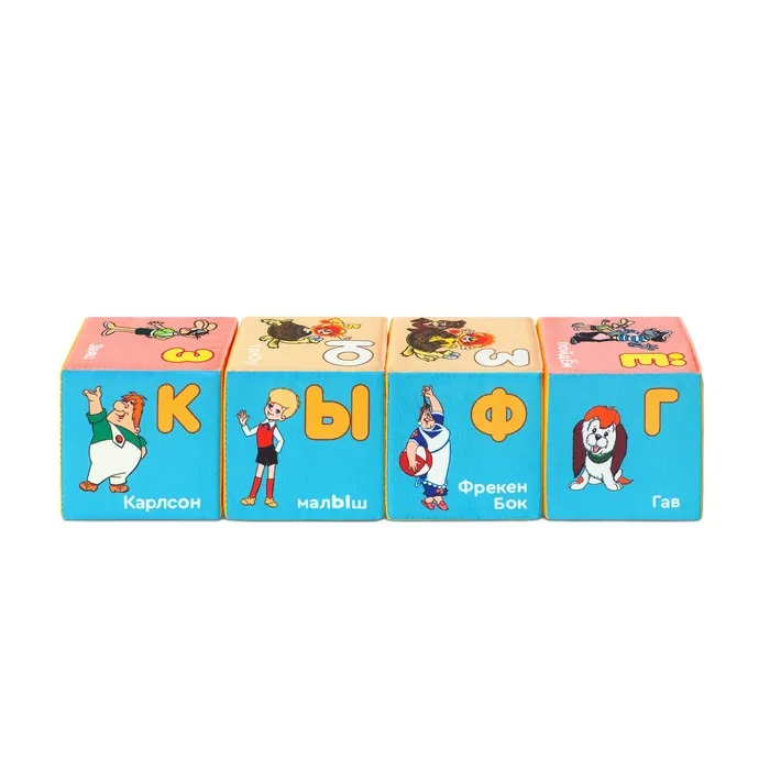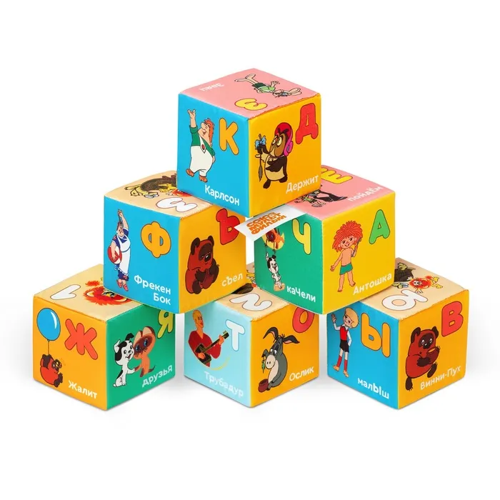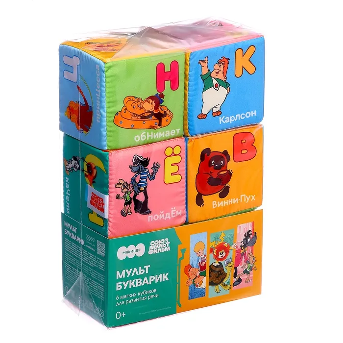 Набор развивающих мягких кубиков Мякиши «МультБукварик», Союзмультфильм, 8×8 см — Характеристики