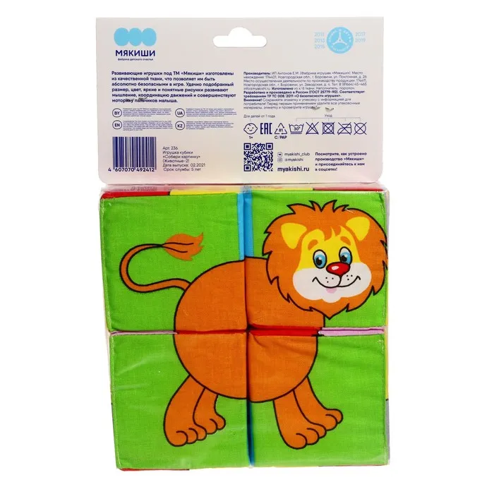Набор развивающих мягких кубиков «Собери картинку. Животные 2» — Характеристики