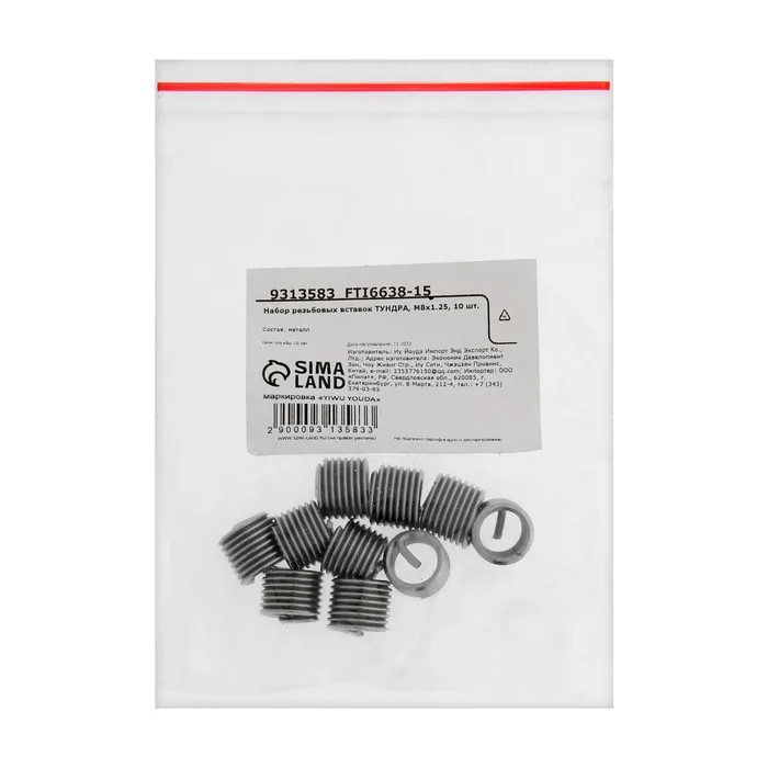 Набор резьбовых вставок ТУНДРА, М8×1.25, 10 шт. — Характеристики