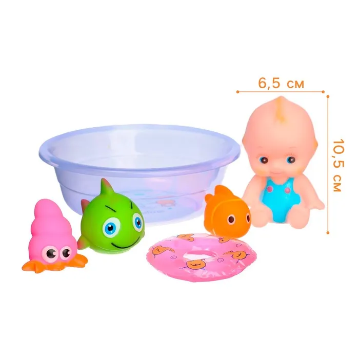 Резиновые игрушки для ванны Крошка Я, пупс для купания с ванночкой, в наборе 6 шт., с пищалкой