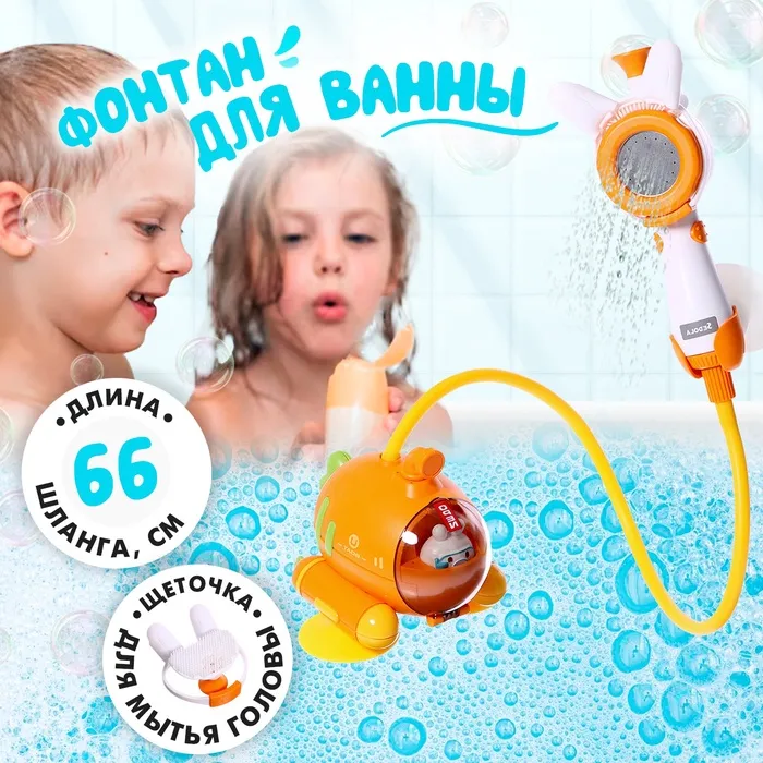 Детский душ для ванны «Подводная лодка», с щёткой для мытья головы, работает от батареек