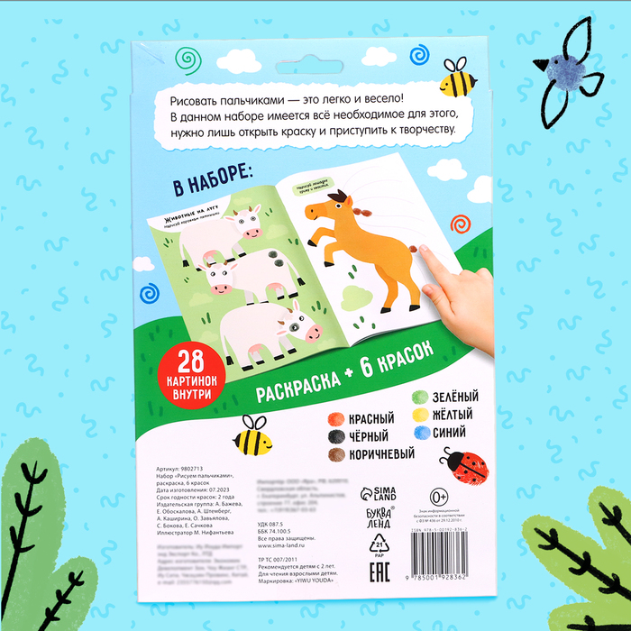Набор «Рисуем пальчиками», раскраска, 6 красок — Характеристики