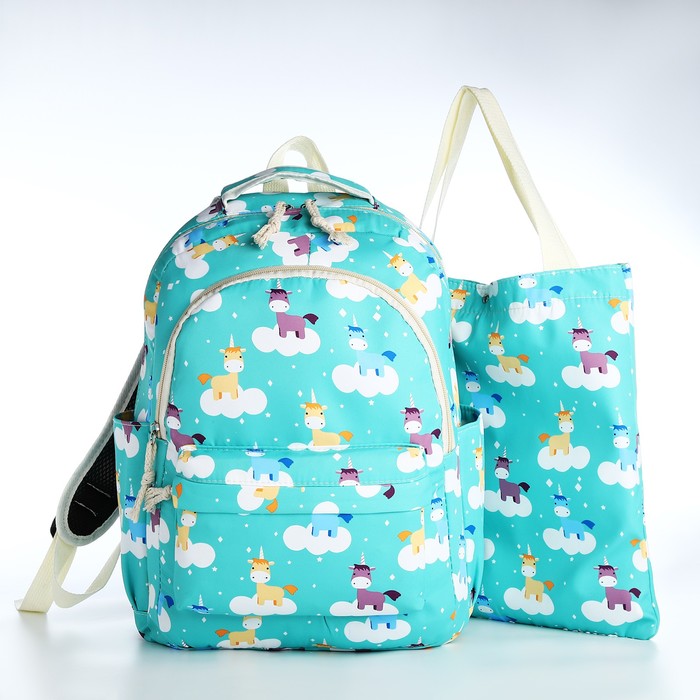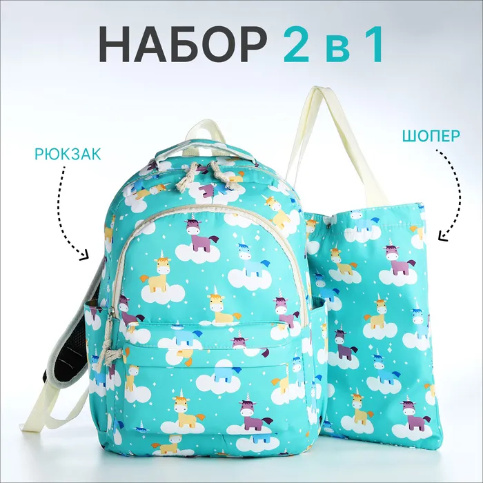 Набор рюкзак молодёжный из текстиля, сумка-шопер, цвет бирюзовый — Характеристики