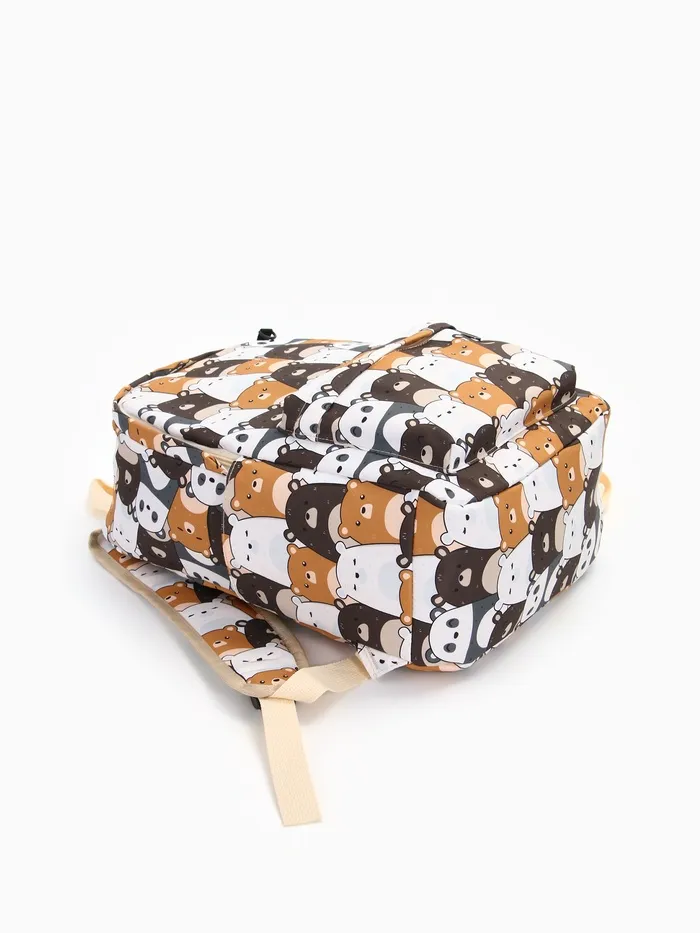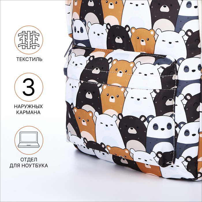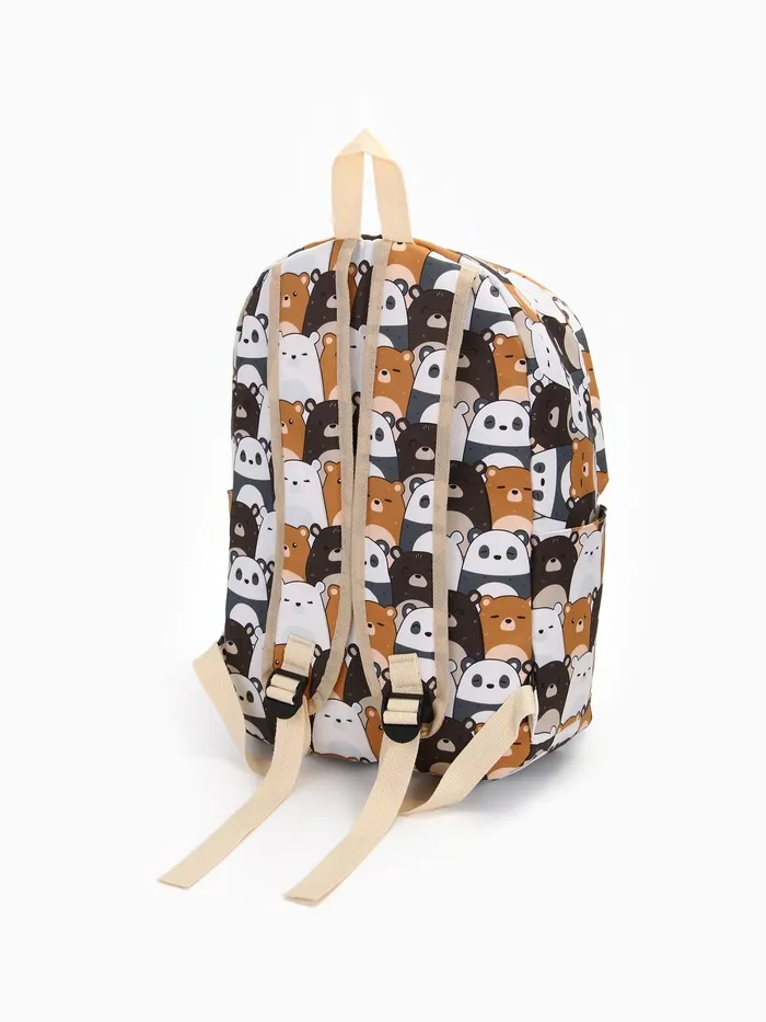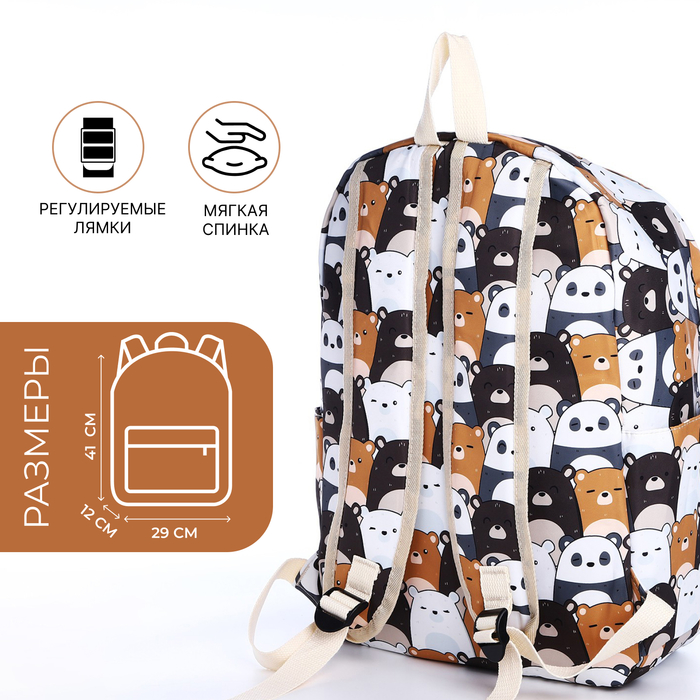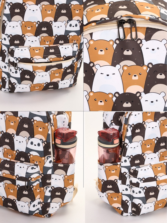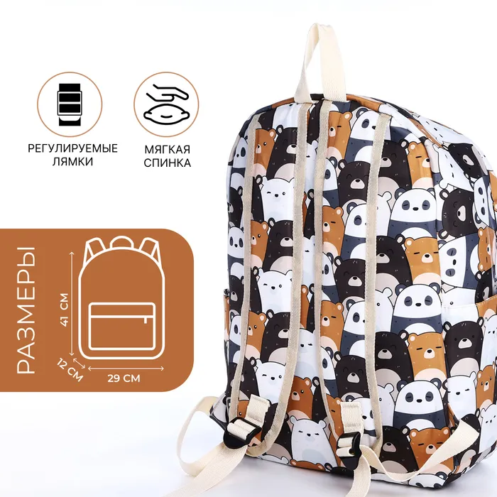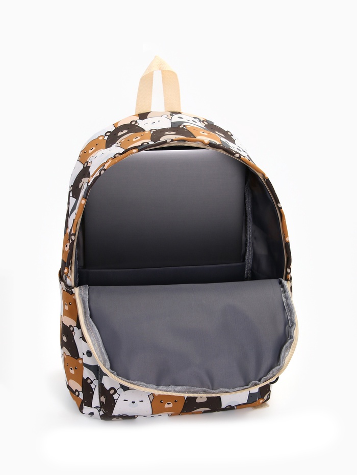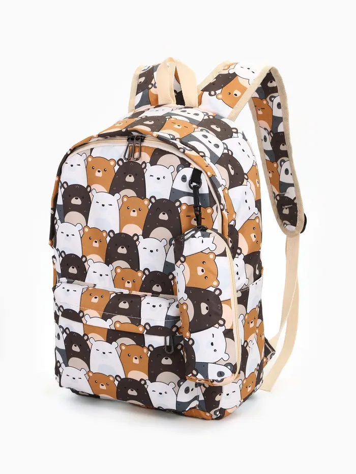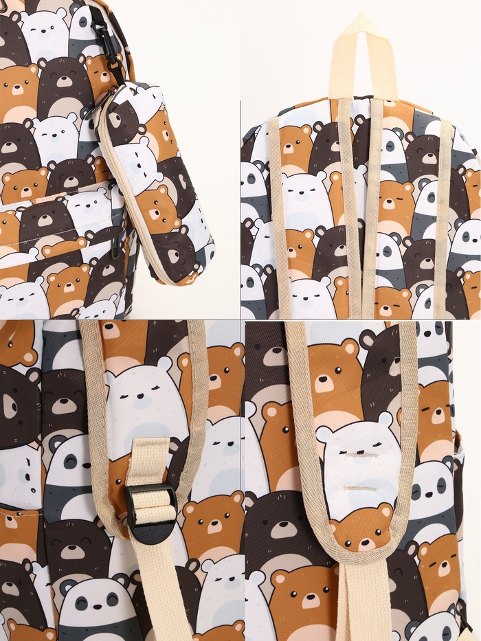 Набор: рюкзак школьный и пенал, с карманами, с принтом, белый/коричневый — Характеристики