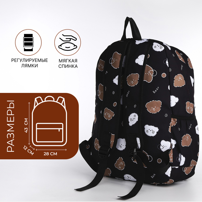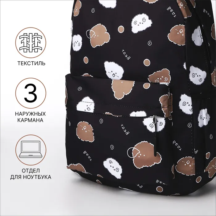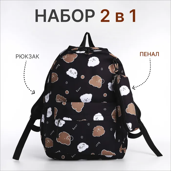 Набор: рюкзак школьный и пенал, с карманами, с принтом, чёрный — Характеристики