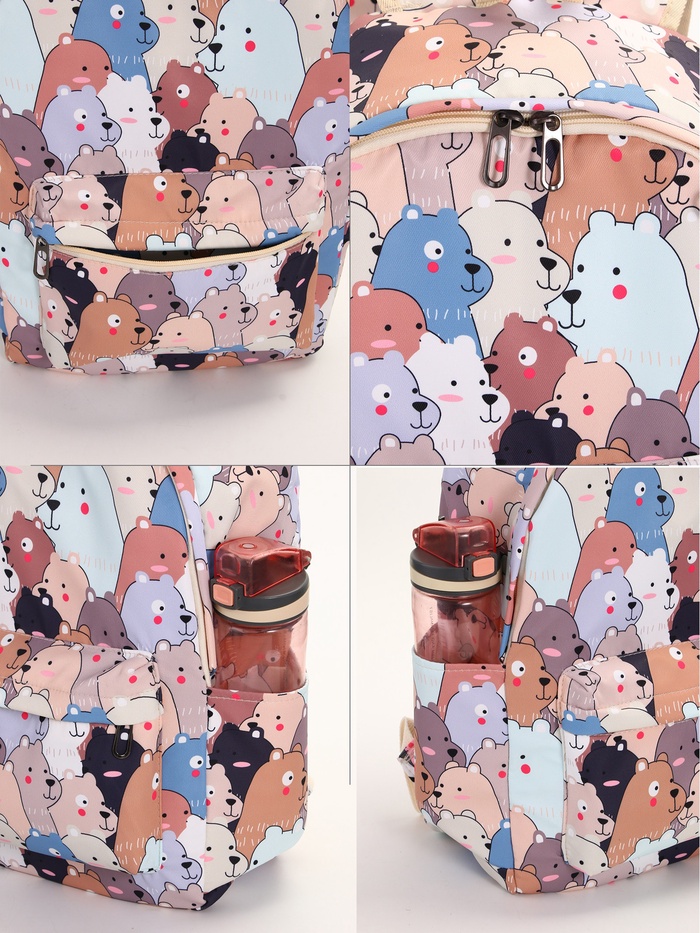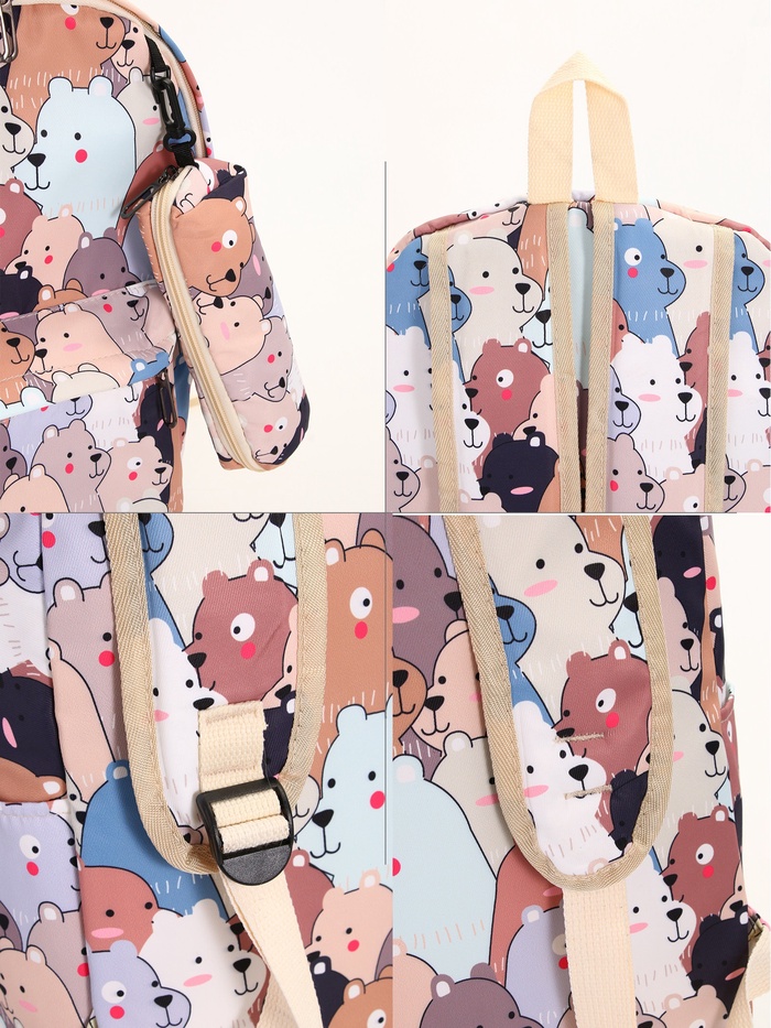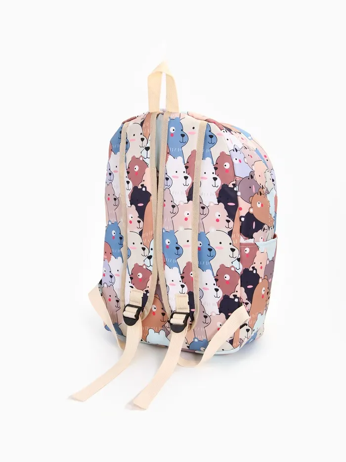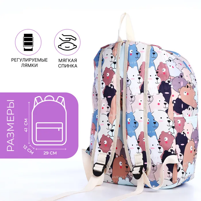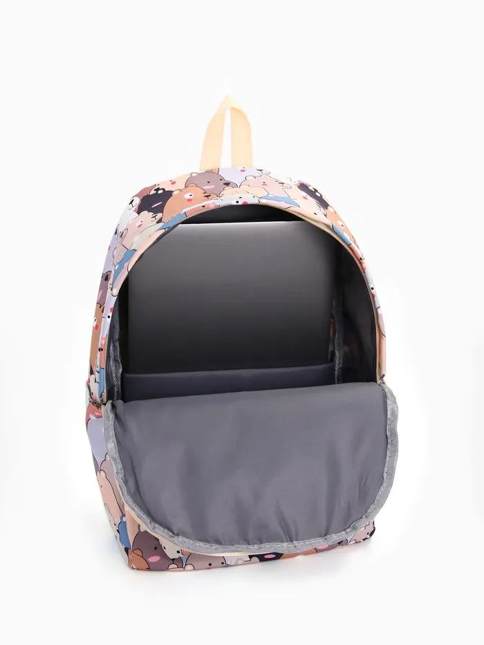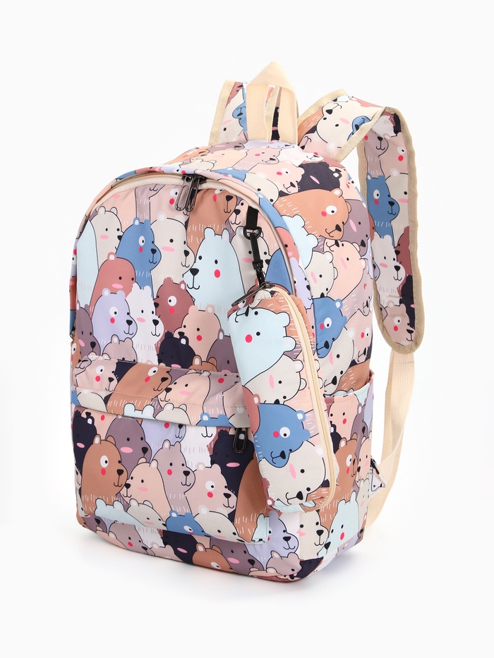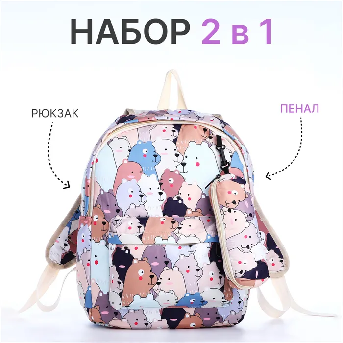Набор: рюкзак школьный и пенал, с карманами, с принтом, размер 29×12×41 см, белый/бежевый — Характеристики