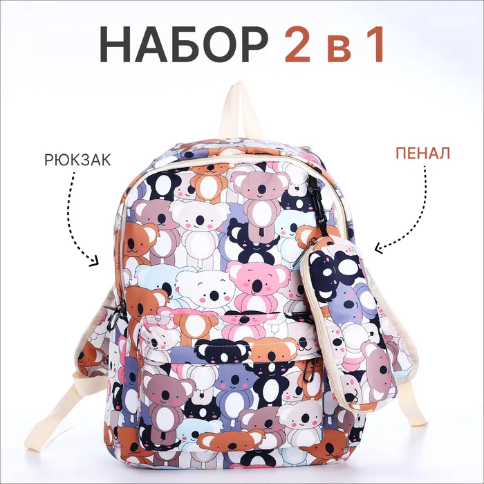 Набор: рюкзак школьный и пенал, с карманами, с принтом, разноцветный — Характеристики