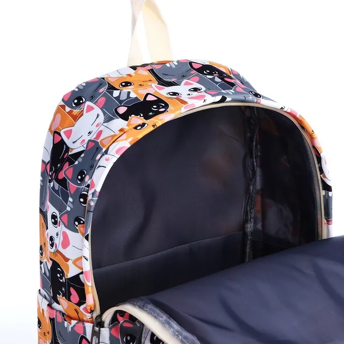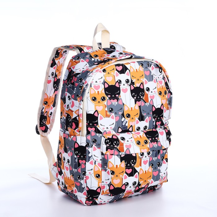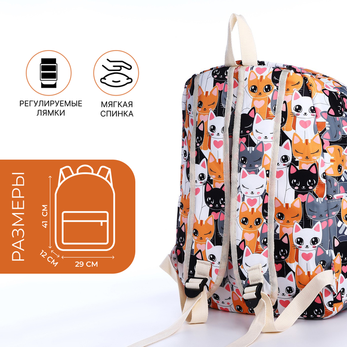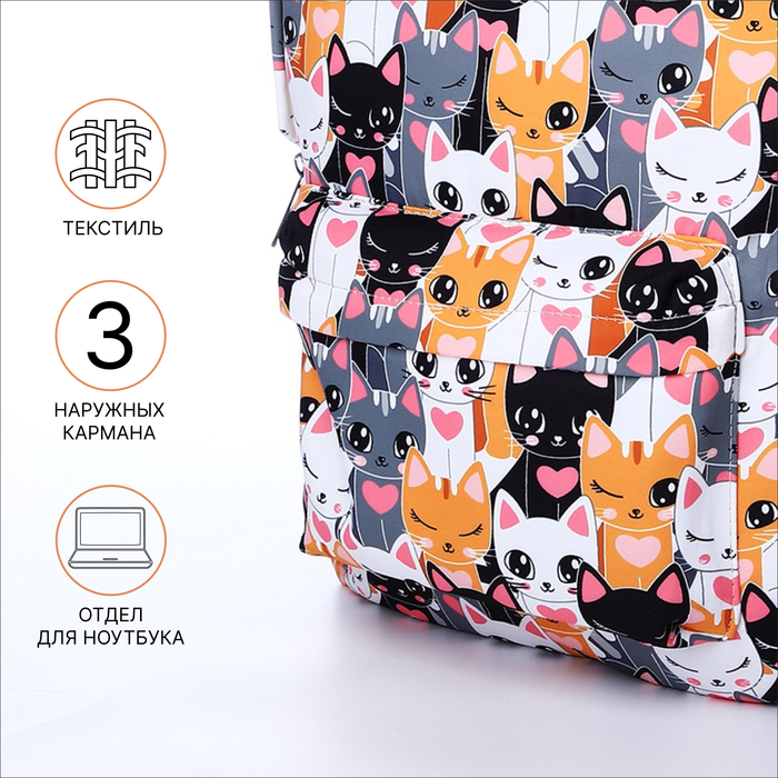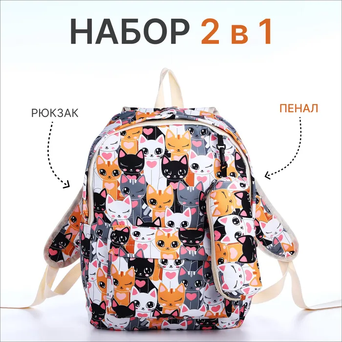 Набор: рюкзак школьный и пенал, с карманами, с принтом, разноцветный/оранжевый — Характеристики