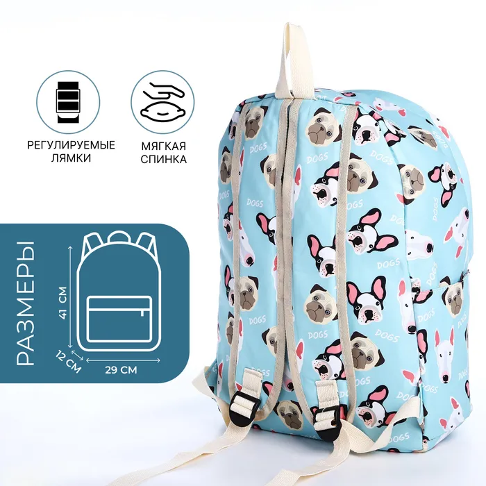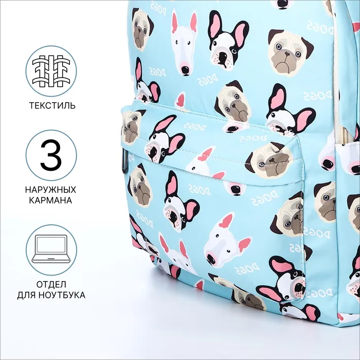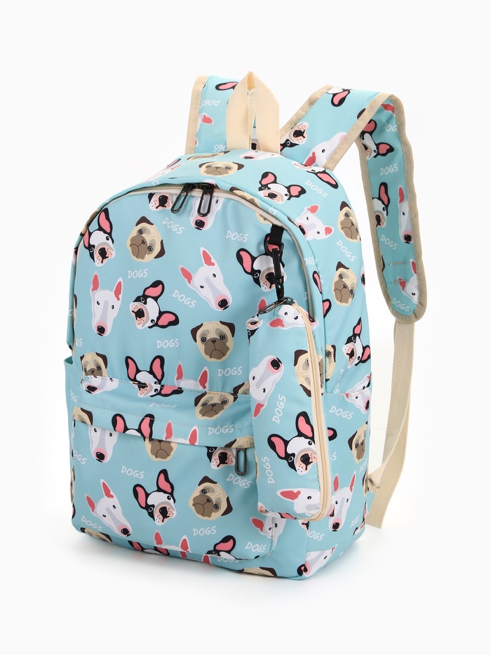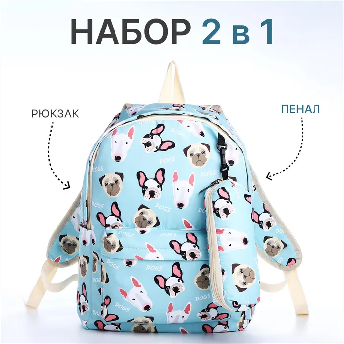 Набор: рюкзак школьный и пенал, с карманами, с рисунком, размер 29×12×41 см, голубой — Характеристики