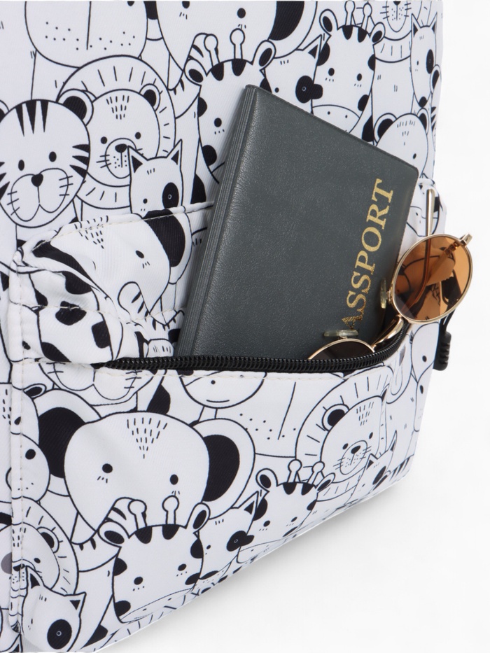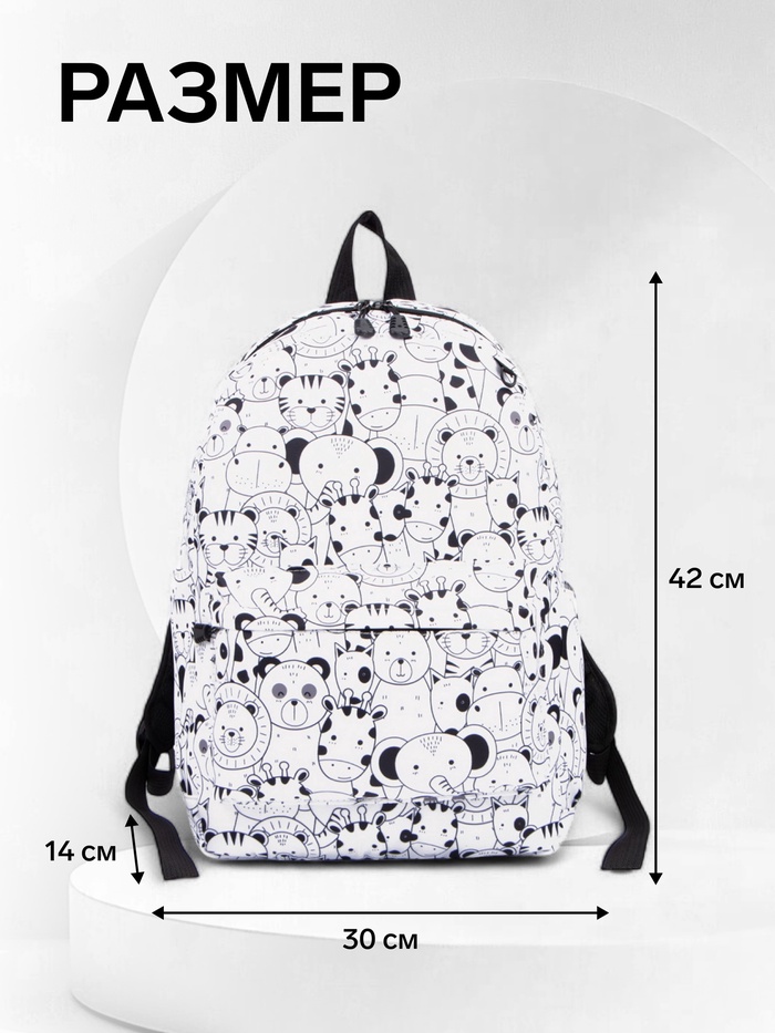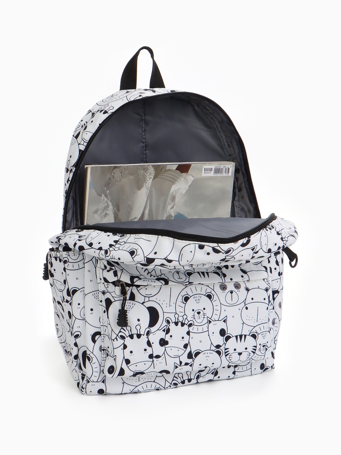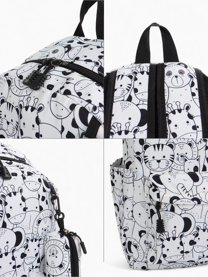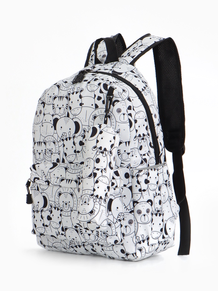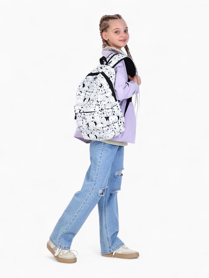 Набор: рюкзак школьный и пенал, с карманом, с принтом, белый/разноцветный — Характеристики