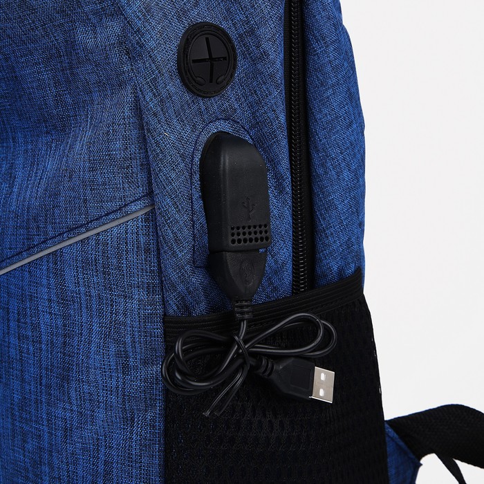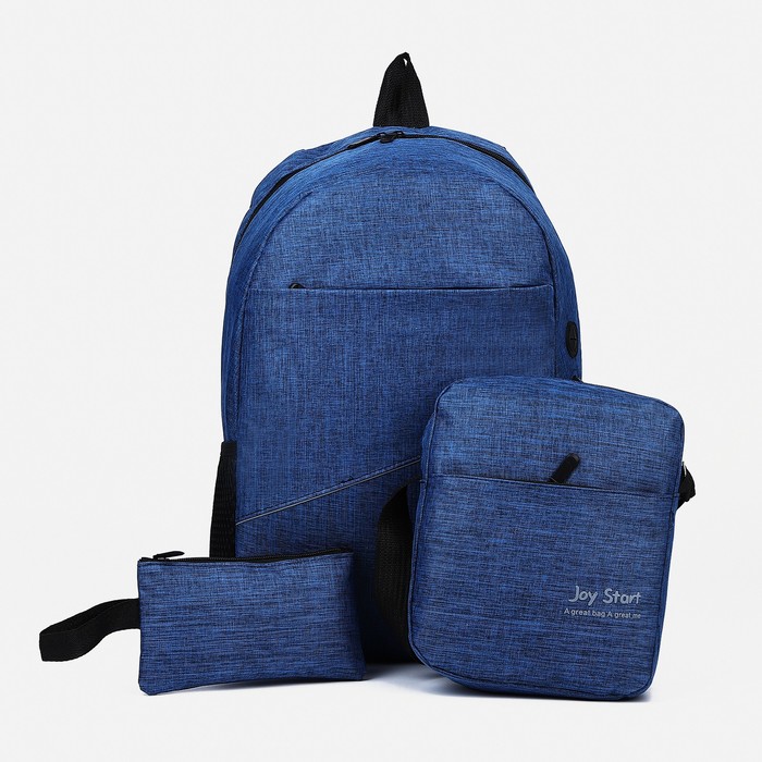 Набор рюкзак школьный на молнии из текстиля с USB, сумка, косметичка, цвет синий — Характеристики
