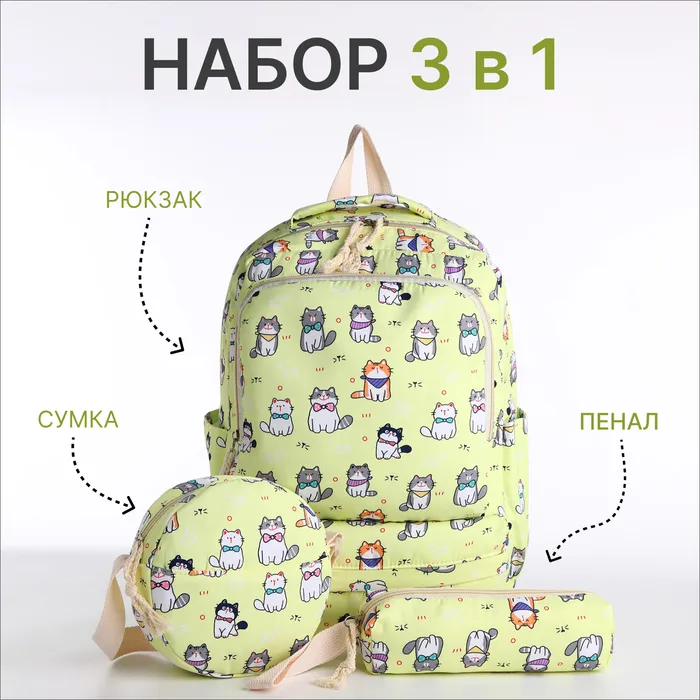 Этот яркий комплект с милыми котятами станет верным спутником для школьных приключений. Он объединяет всё необходимое для учёбы и отдыха, помогая легко организовать пространство и сохранять отличное настроение каждый день.