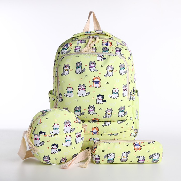 Набор: рюкзак школьный на молнии, сумка, косметичка, цвет жёлтый — Характеристики