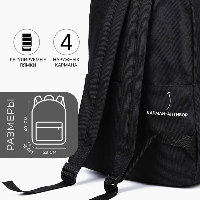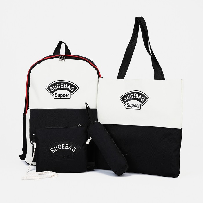 Набор: рюкзак школьный, шопер, сумка, пенал, чёрный — Характеристики