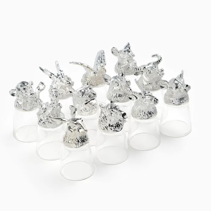 Набор стопок-перевертышей высокого качества с головами животных — оригинальный подарок для охотника, а также будет незаменим на большом дружеском застолье или на охотничьем привале.