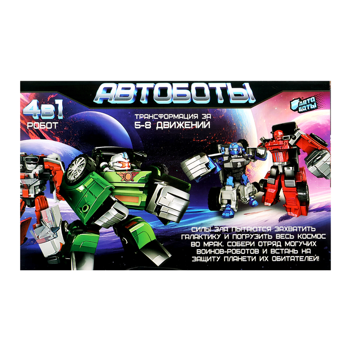 Роботы «Автоботы» уже спешат из межгалактического пространства для выполнения важной миссии на Земле. Этот набор — отличный подарок для детей от 3 лет, которые увлекаются трансформерами и мечтают стать героями. В набор входят 2 робота: полицейский и пожарный.